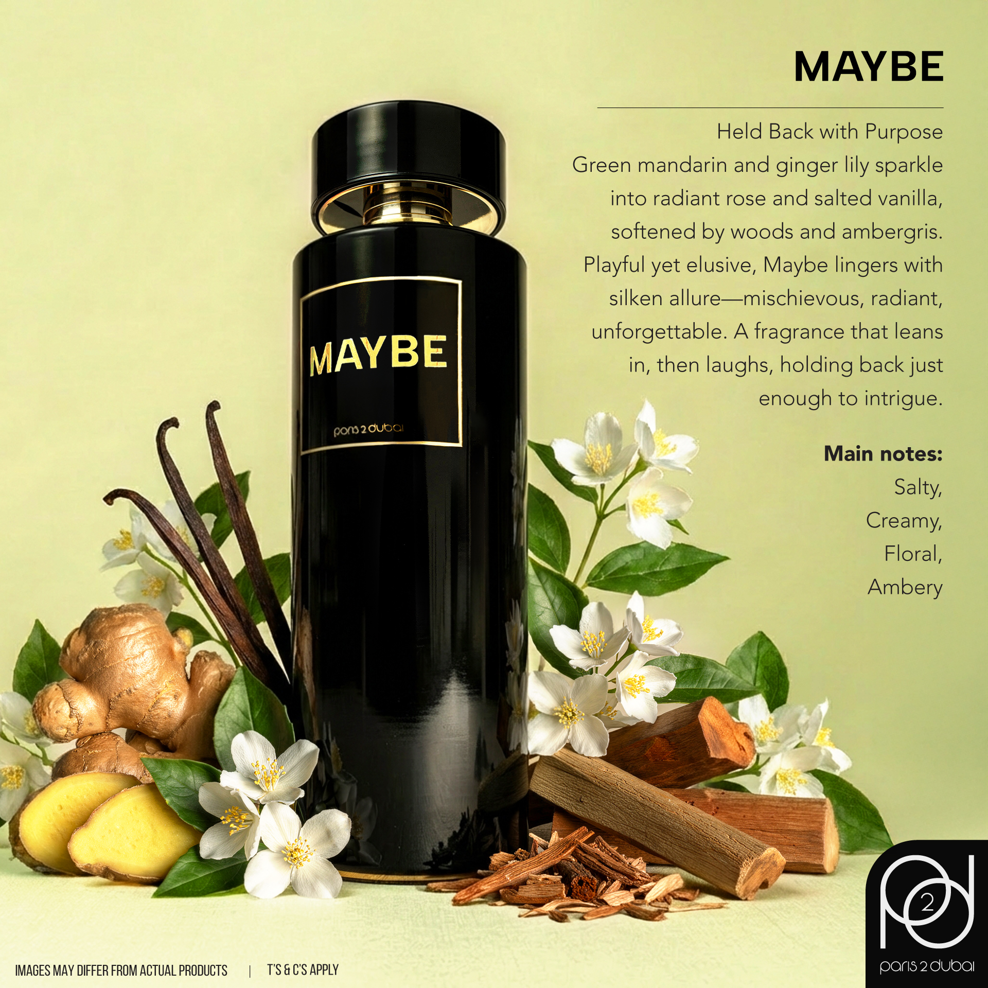 A glint of mischief wrapped in radiance — Maybe opens with a breeze of green mandarin and ginger lily, laced with aquatic clarity.