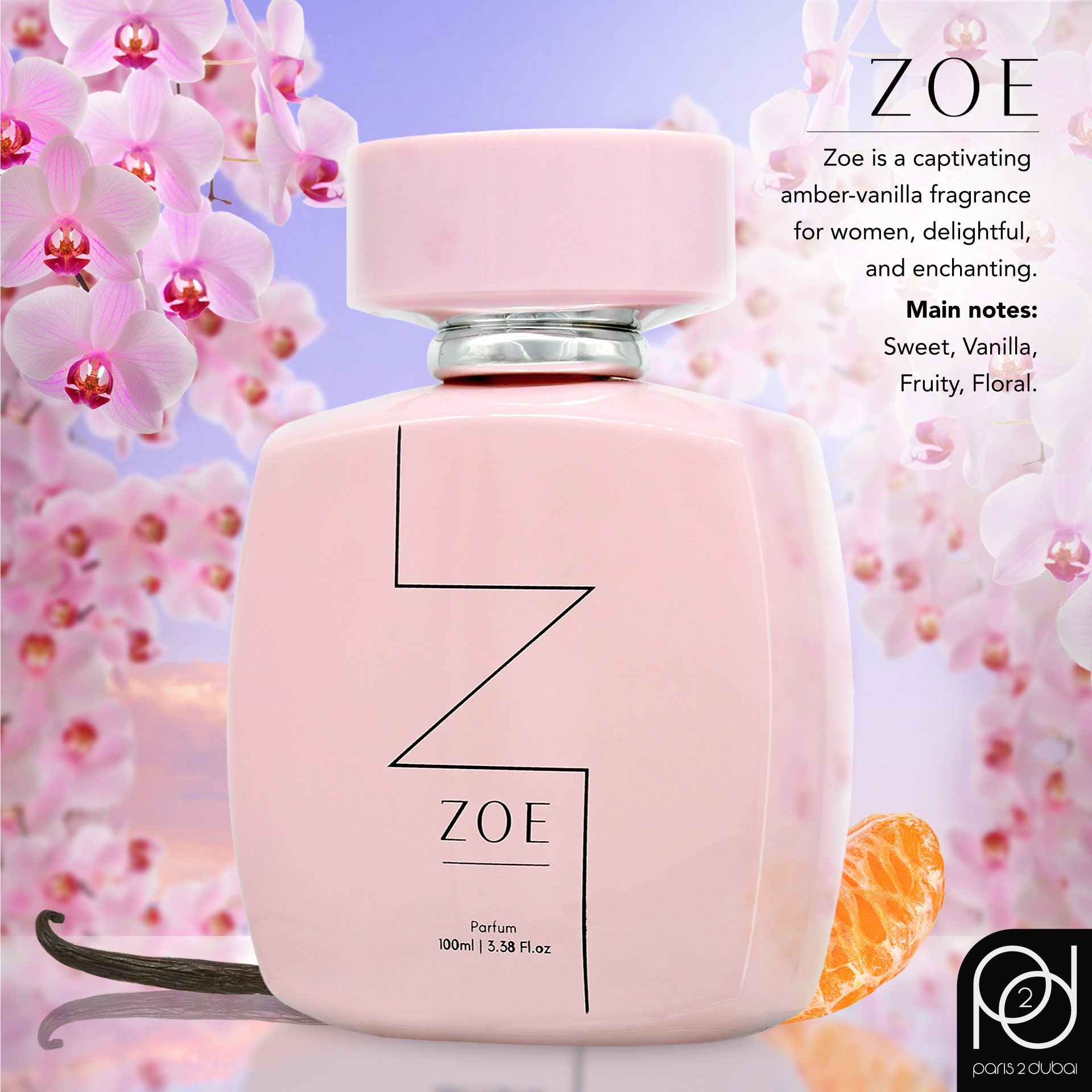 Zoe, inspired by Yara, is a captivating amber-vanilla fragrance for women, delightful, playful and enchanting. It opens with a lively mix of floral and citrus notes, and the yummy heart of gourmand notes sinks into a velvety base of vanilla and musk. An unforgettable experience.